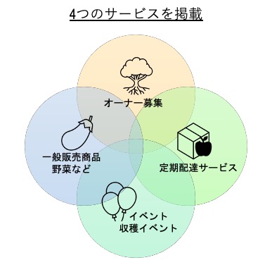 Sukuwellでは、4種類のサービスでの出品をしていただけます。1つめはオーナー製品、2つめは通常の一般的な販売商品、3つめは定期配送サービス、4つめはイベントです。どれか1つの掲載方法でも掲載していただけます。