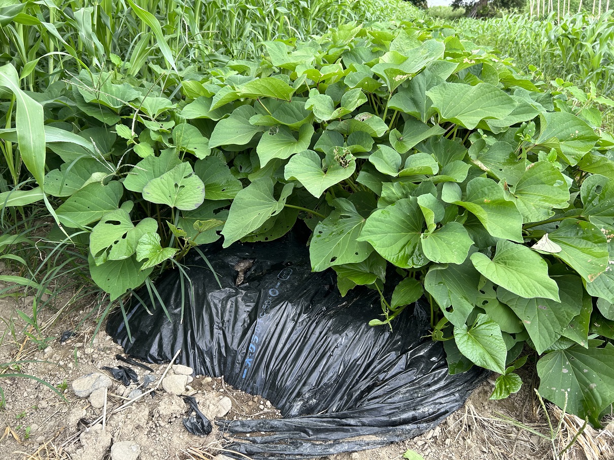 2023年8月7日 そら豆からのサツマイモ栽培試験中です