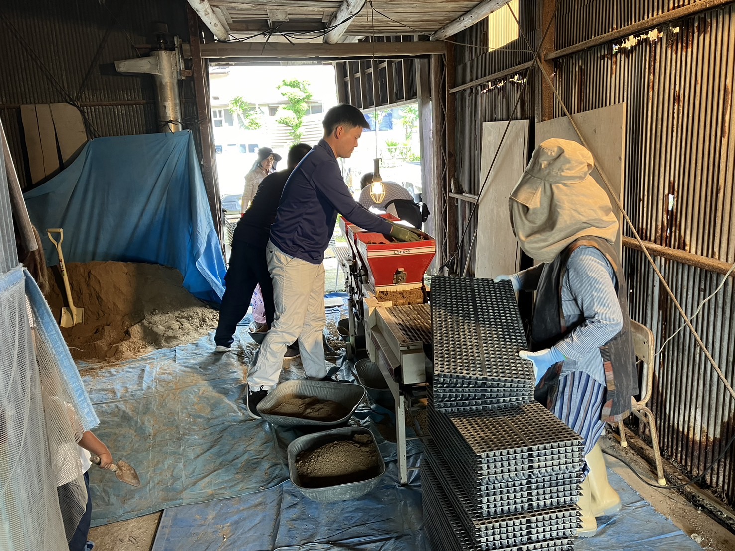 6月1日、晴れ時々曇りの天気の中、自然栽培米DNAコシヒカリの種まきを行いました。今回の種まきには、多くのボランティアの皆さんが参加してくださり、無事にみのるポット田植え機用苗箱への種まきを終えることができました。3時間で540箱もの苗箱に種をまくという大きな作業でしたが、皆さんのご協力のおかげでスムーズに進行しました。