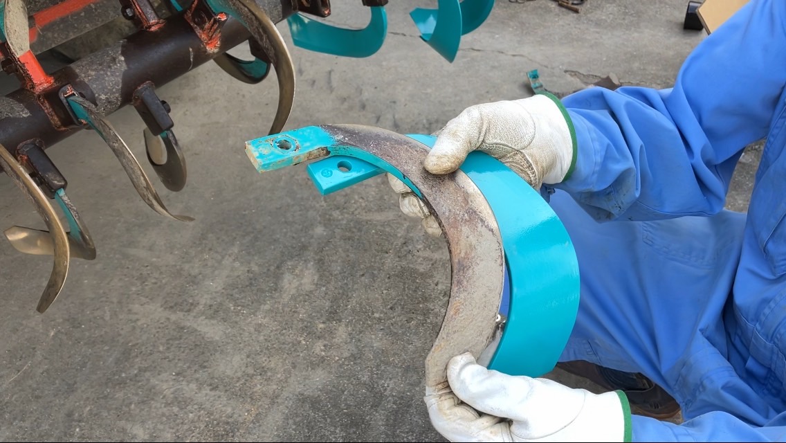 耕運爪の総数は36個ありましたが、交換には約4時間かかりました。特に、ボルトがしっかりと締まっていたため、外すときはかなりの力が必要でした。締める際も同様に、しっかりと締め付けるために力を込めました。