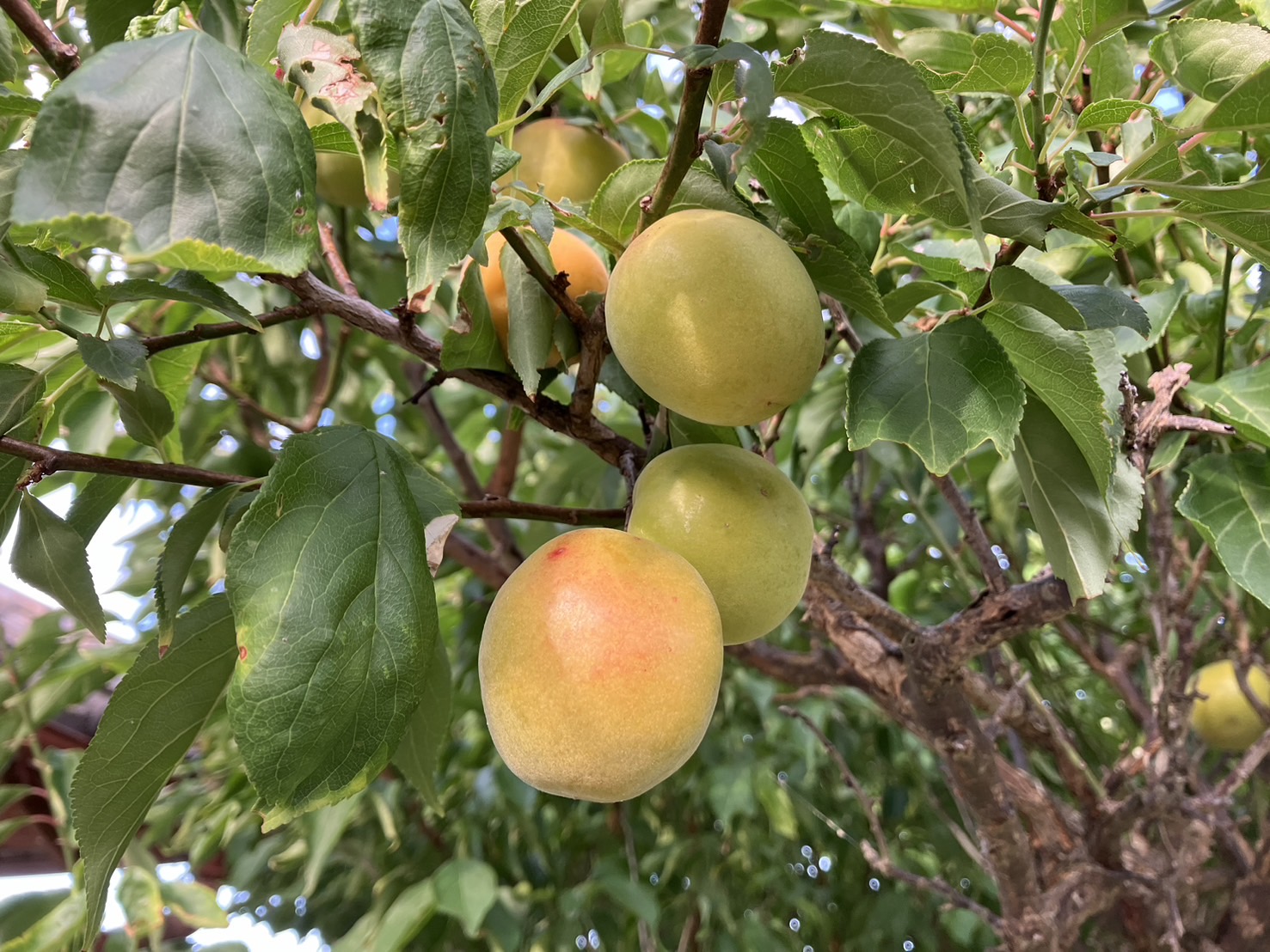 数年前、私たちは梅の収穫に失敗しました。収穫後の剪定に失敗し、昨年は実が付かない状況になってしまいました。ですが、今年は違います。大きな実が木々についていて、梅の木が生命の営みを示してくれています。
