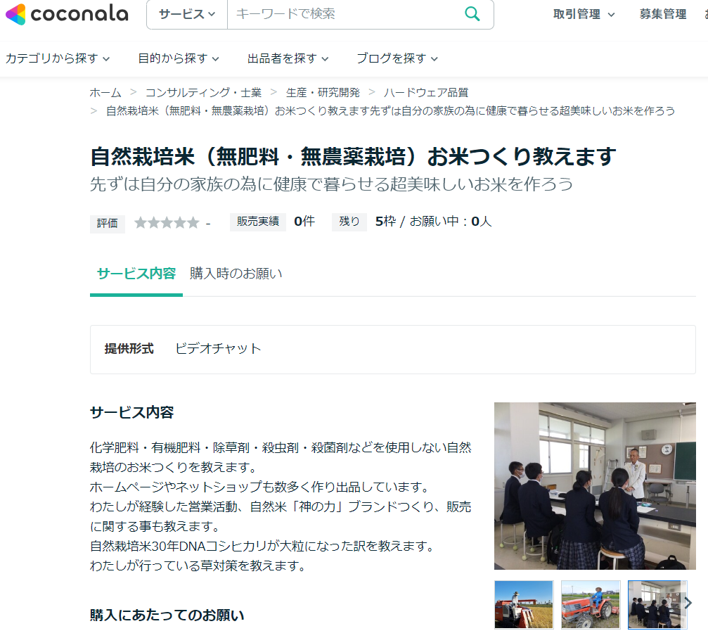 ココナラで自然栽培米の専門家として活動を始めました「コンサルティング」