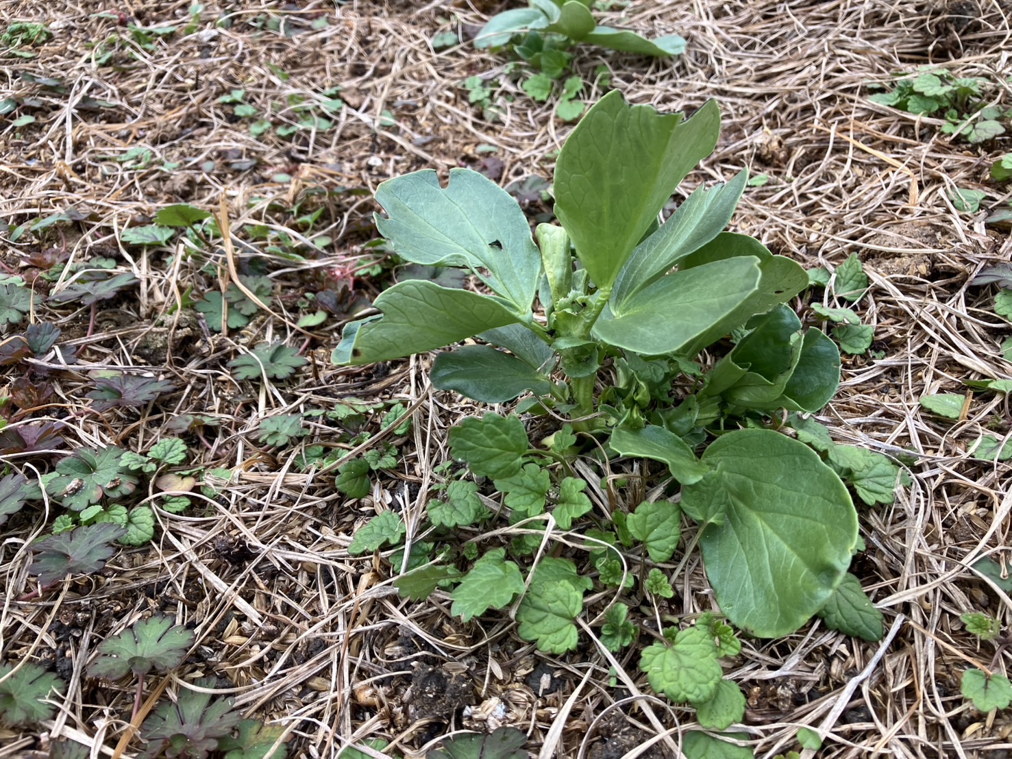 昨年11月に、家庭菜園で空豆の種をまきました。今年の秋は雨が少なく、発芽するか心配していましたが、種の半分くらいがしっかり芽を出してくれました。