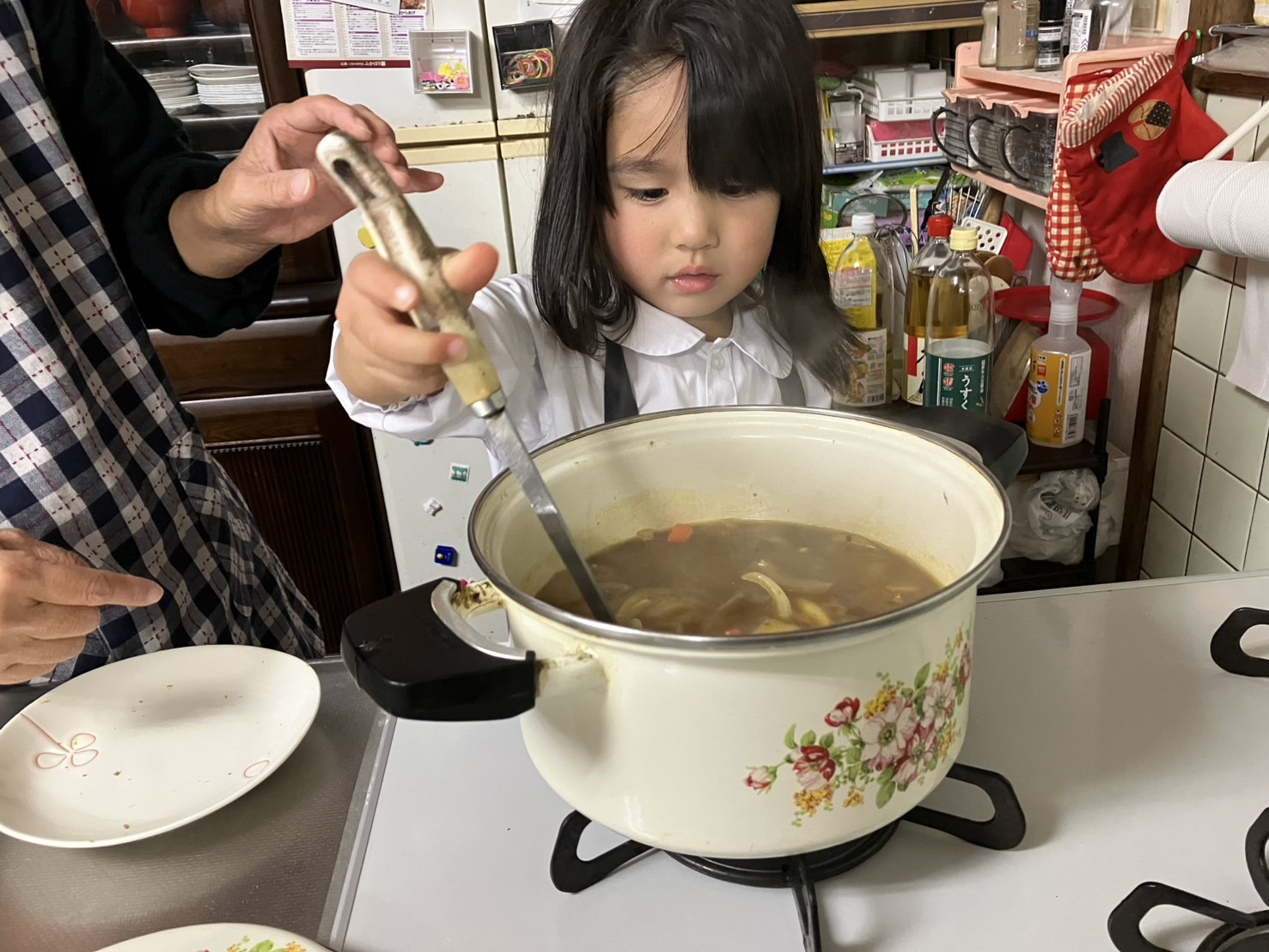 6歳の双子の孫たちが、先日おばあちゃんからカレーの作り方を教えてもらいました。