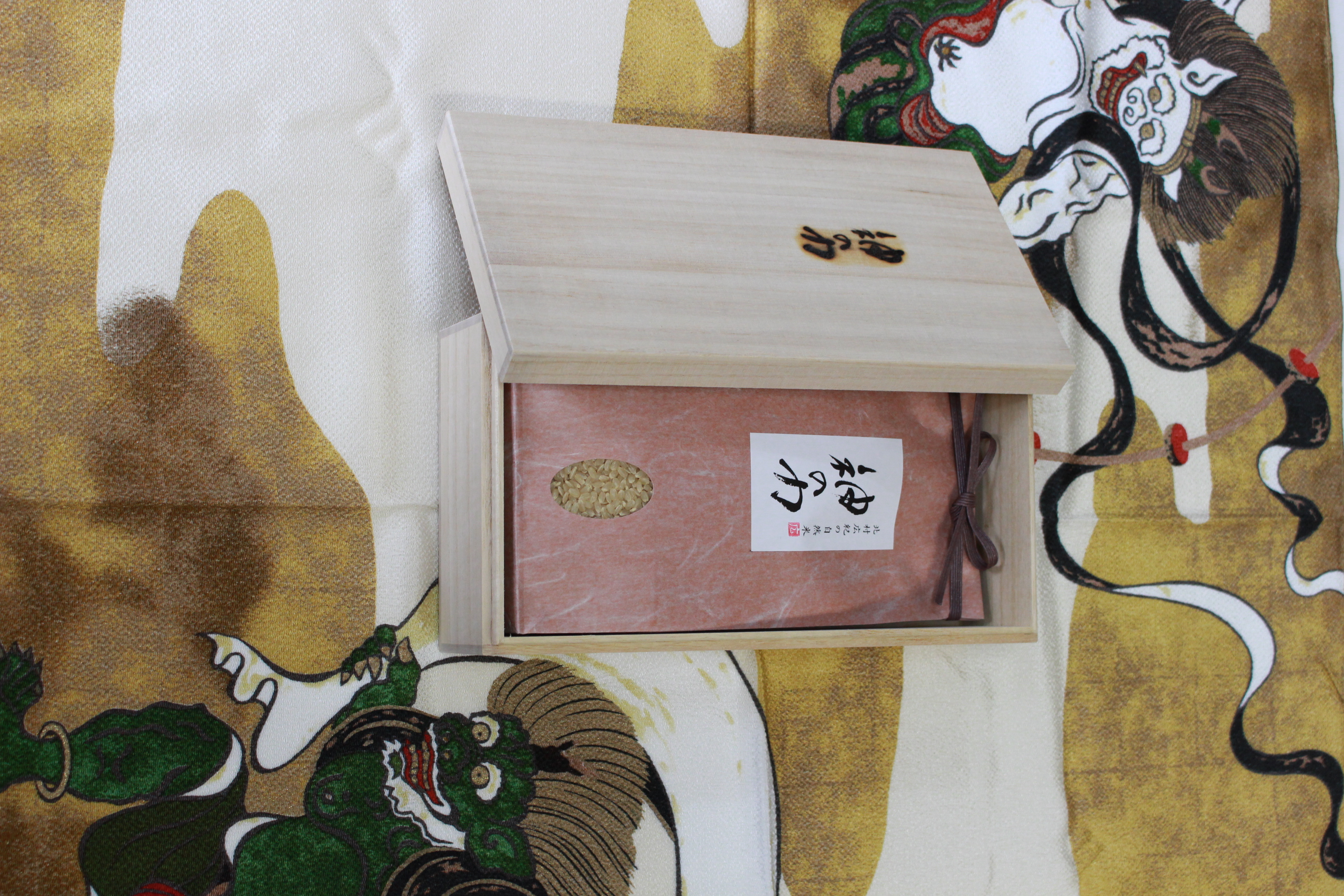 🌸🌸 🌸🌸 🌸 自然米スーパー「神の力」1㎏(玄米)桐箱風呂敷包み(風神雷神)